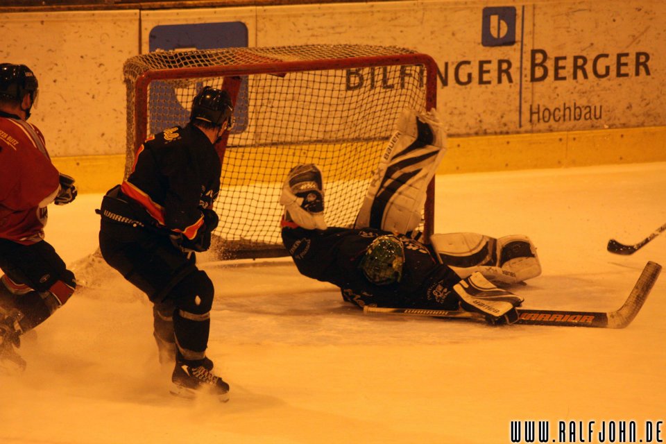 Doch die Bulls rund um Kapitän Atila Pal wollten dieses Spiel für sich entscheiden und eine Runde weiterkommen. Dementsprechend präsentierten sie sich dann auch zur Freude und unter den Anfeuerungen der mitgereisten Fans. Die kämpferische Überlegenheit lag bereits zu Beginn des ersten Drittels bei den Hallensern, und es ging immer wieder in Richtung Erfurter Tor. Aber alle Torschüsse endeten bei Stephan Löffelholz oder am Torpfosten. Und so wurde es zum Herzschlagspiel für die Fans, denn eigentlich hat man den Puck doch schon immer im Tor gesehen, aber dann klappte es doch nicht. Dies sollte sich bis zum Ende des Drittels nicht ändern.