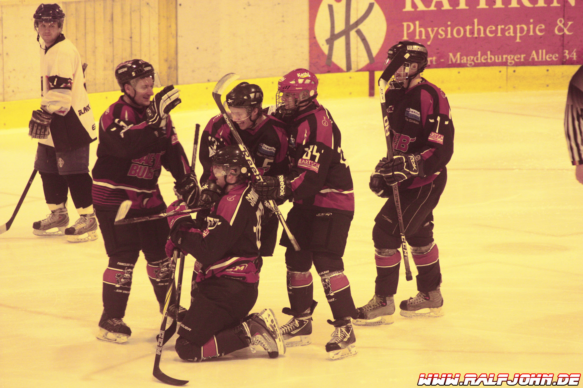 Den Siegtreffer konnte dann Saltan Gindulin in der 59. Minute bei doppelter Überzahl erzielen und die ersten drei Punkte auf das Konto der Saale Bulls bringen. Diese sprangen damit auf Platz 5 der Tabelle, bei Punktgleichheit mit Platz 3 bis 6. Und diese wurde dann auch mit den mitgereisten Fans und einer Mannschaftsraupe um den Mittelkreis gefeiert.