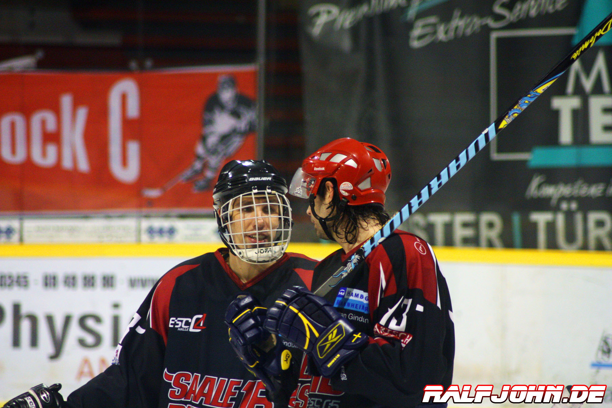 Aus diesem Grund sah man wohl im ersten Drittel zwei gleichwertige Mannschaften auf dem Eis, welche versuchten ihre Chancen zu erspielen. Aber alle Schüsse auf die Tore sollten keinen Erfolg bringen und so ging der erste Abschnitt ohne Treffer zu Ende. Nach der Pause kamen die Bulls wieder gestärkt auf das Eis und setzten nun auf den Angriff. Und so ging es ein ums andere Mal in Richtung des Preussentores, bis dann Arthur Lemmer den ersten Treffer für die Gastgeber erzielte. Doch auch die Gäste nutzten schnell einen Konter zum Ausgleich und legten mit dem Treffer von Hoffer zur zwischenzeitlichen Führung nach, welche von den 2 mitgereisten Fans der Preussen bejubelt wurde. Doch davon ließen sich die Bulls nicht unterkriegen und spielten weiter ihr Angriffssystem, welches kurze Zeit später mit den Treffern von Ehrhardt und Kimstatsch seinen Erfolg zeigte. Jedoch konnten die Berliner auch diese Führung wieder mit einer schnellen Einzelaktion ausgleichen. Die rund 50 Fans der Bulls konnten vor dem Ende des Mittelabschnittes noch einmal über die von Chad Evans zurückgewonnene 4:3 Führung jubeln. Ab diesem Zeitpunkt war deutlich zu merken, dass die Mannschaft auf jeden Fall den Sieg heute davontragen wollte und es wurde um jeden Puck gekämpft.