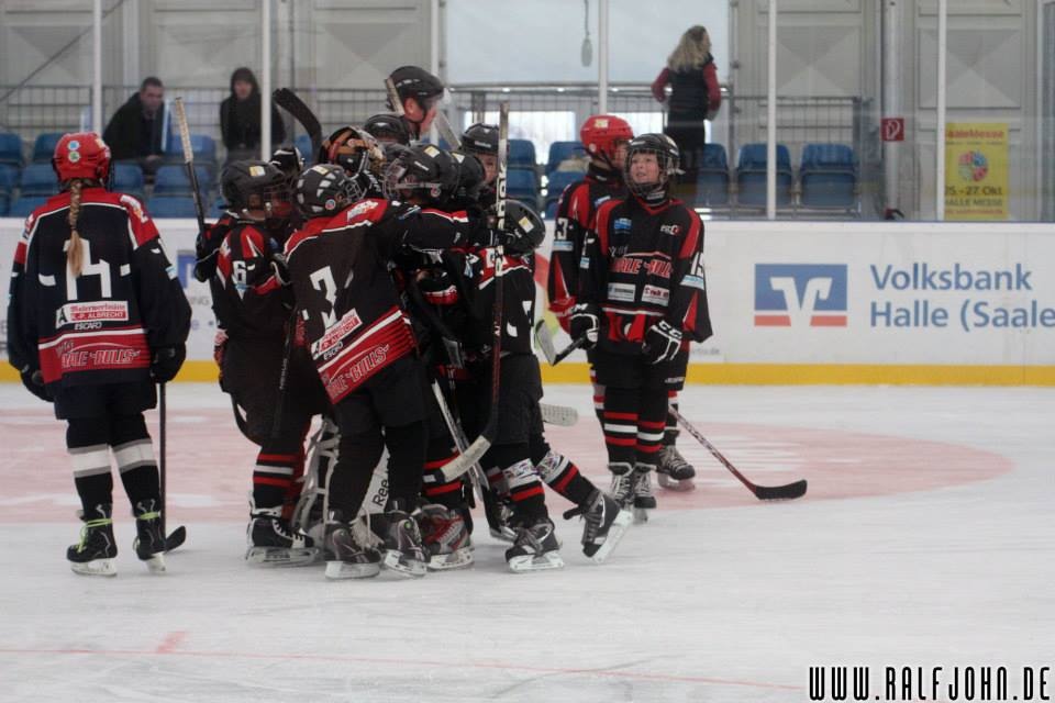 Soziale Netzwerke - Teile es mit der Welt!Am heutigen Samstag, dem 4.Spieltag, hatten unsere Knaben den ECC Preussen Berlin im heimischen Eisdom zu Gast. Von der ersten Minute an dominierte die Sg Halle/Leipzig das Spiel und es dauerte nur bis zur 2. Spielminute bis die Sg Halle/Leipzig zum 1. Tor kam. Halle machte weiter Druck und konnte in der 7. und 11. Spielminute 2 weitere Toren erzielen. Berlin kam dann in der 12. Spielminute zum Anschlußtreffer, doch die Sg antwortete 6 Min später mit dem 4. Tor, sodass man mit 3 Toren Vorsprung in die Drittelpause gehen konnte.