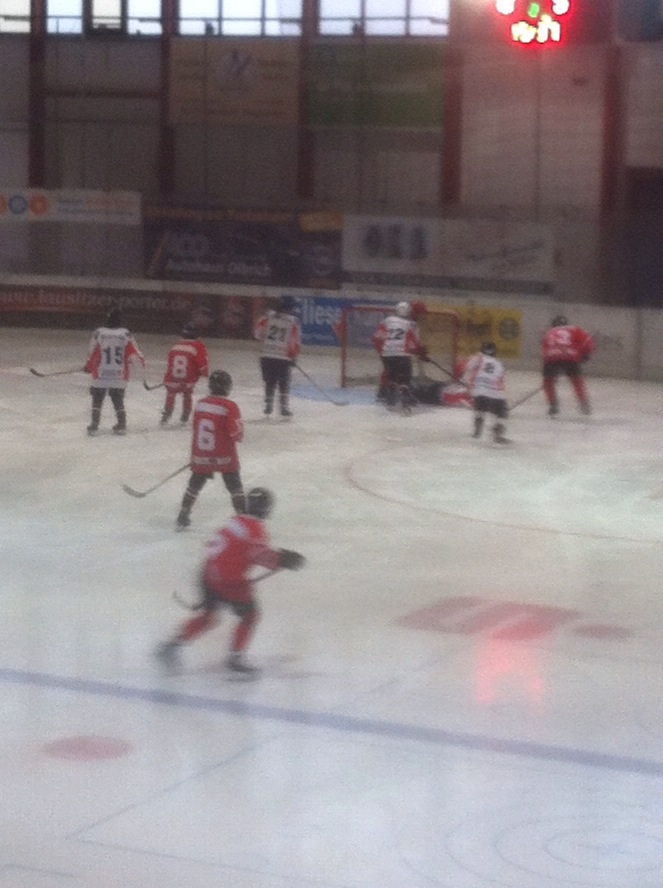 Von Beginn an nahm die Spielgemeinschaft das Heft in die Hand und man konnte postwendend in der 2. Spielminute das 1:0 erzielen. Die SG blieb weiter am Drücker und erarbeitete sich mehrere Chancen. In der 6. Spielminute war es dann auch soweit, die SG erhöhte auf 2:0. Jonsdorf schwächte sich jetzt immer wieder, indem sie Strafen nehmen mussten, da sie an diesem Tag läuferisch und technisch nicht mit der SG mithalten konnten. Halle wiederum konnte keinen Nutzen aus den Überzahlsituationen ziehen und somit ging es mit einem 2:0 in die erste Pause.