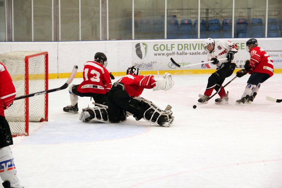 Sie Spannung im letzten Drittel war dann nicht mehr zu überbieten. Zunächst zogen die Chemnitzer mit 5-3 davon. Aber das Team der Gemeinschaft zeigte den benötigten Willen und konnte den 2 Tore Rückstand egalisieren. Chemnitz machte „Dicke Backen“ und war verunsichert. Dann kam die große Chance für Halle selbst doch 3 gute Einschußmöglichkeiten bei einem 5-3 ÜZ Spiel konnten nicht verwertet werden und so kam es wie zuletzt öfters schon…120 Sekunden vor Ende trafen die Sachsen nach einem Konter zum 6-5. Danach wollten die Chemnitzer nur noch den knappen Vorsprung über die Zeit retten…was letztendlich gelang.