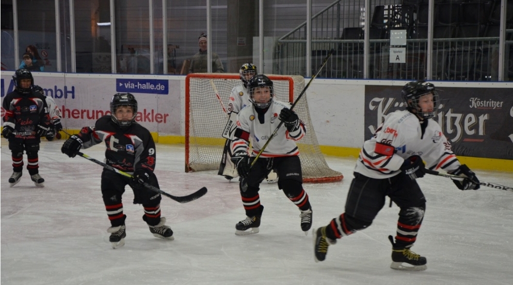Natürlich gab es auch Ergebnisse. Und bis kurz vor Schluß standen manche Platzierungen nicht fest. So kämpften unsere Young Saale Bulls als jüngstes Team des Turniers im allerletzten Spiel um Platz 8, um noch vor die Icefighters aus Leipzig zu rutschen, die man im Mini-Derby schon besiegt hatte.