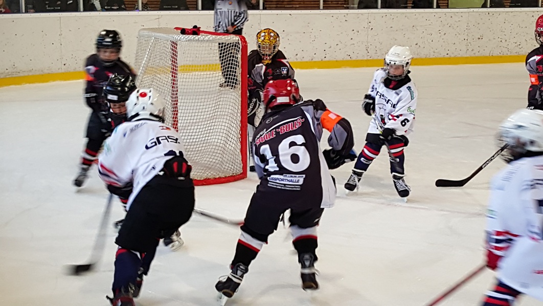 Die Kinder konnten so als Mannschaft reisen. Die Eltern hatte ihren Spaß "im Hintergrund". Einziger kleiner Wermutstropfen: Die Spieler vom Kooperationspartner OSC Berlin waren natürlich schon in Berlin. Somit reiste letzten Endes nicht die gesamte Mannschaft zusammen an. Dennoch schien es dem Team gut zu tun. In einem überzeugenden und spannenden ersten Spiel konnten unsere Young Saale Bulls die Eisbären Berlin (U9) knapp mit 6 : 4 besiegen. Das tolle am ersten Spiel war vor allem, dass man deutlich sehen konnte, wie sich durch die Bank alle Kinder weiterentwickelt haben. Sowohl schlittschuhläuferisch, als auch stocktechnisch aber vor allem auch im Zusammenspiel. Ein großes Lob somit an die Trainer in beiden Lagern (OSC und ESV)! Der Sieg gegen die Eisbären war ein guter Start ins Turnier.