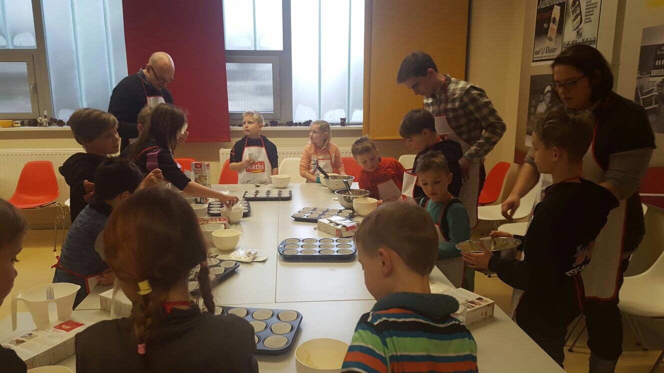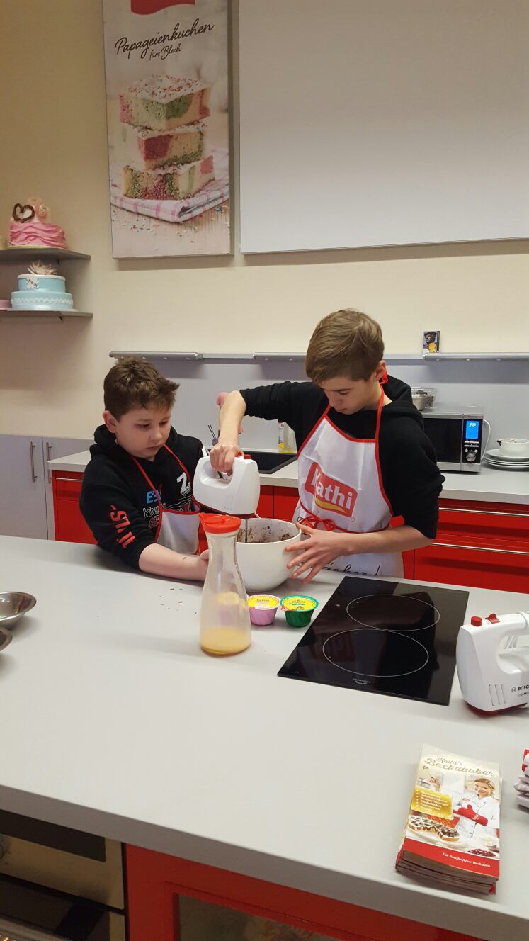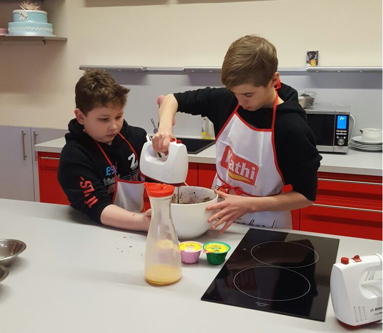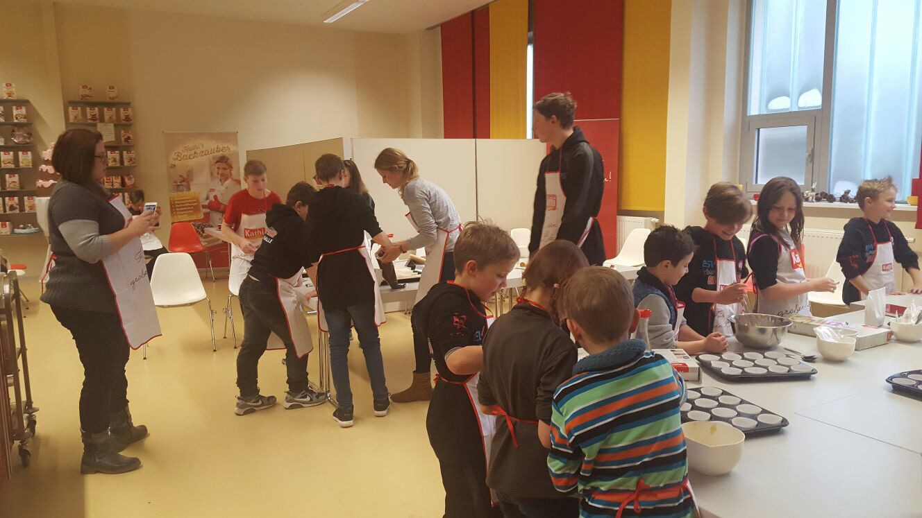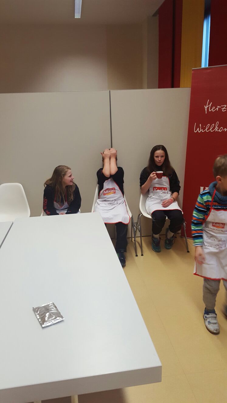 Dieses Mal durften die jungen Sportlerinnen und Sportler mit dem Mannschaftsbus der Saale Bulls zu Kathi "anreisen". Das allein fanden alle bereits ganz "cool". Bei Kathi wurden nach gebührendem Empfang auch wieder zwei Gruppen gebildet. Während die Gruppe der Kleineren Papagei Muffins backen durfte, gab es für die älteren Kinder andere Backmischungen zum Ausprobieren. Dabei mussten eigenständig Zutaten abgemessen und mit dem Teig verrührt werden. Das Naschen vom Teig war ausdrücklich erlaubt. Das ließen sich die meisten nicht zweimal sagen. Während die Muffins dann gebacken wurden, machten sich alle an die Herstellung eines rosa Fondant-Schweinchens. Natürlich bedurfte es dabei der Hilfe der Kathi Mitarbeiter. Das Formen durften die Kinder dann wieder selbst übernehmen. Nachdem das Schwein fertig und die gebackenen Muffins ausgekühlt waren ging es ans Dekorieren. Glasuren wurden in den verschiedensten Farben und Geschmacksrichtungen gemischt. Jeder ganz nach seinem "Gusto". Als alle Muffins verziert waren, ging es ans Einpacken. Jeder bekam seine Muffins im original Kathi-Karton. Mit ihren Kartons bestückt stiegen alle zum Schluss wieder in den Saale Bulls Bus und traten die Rückfahrt zum Eisdom an. Auch hier gilt unser Dank der Firma Kathi, die diesen Ausflug ermöglichte.Ich hoffe den Geschwistern und Eltern zu Hause haben die Mitbringsel auch geschmeckt.